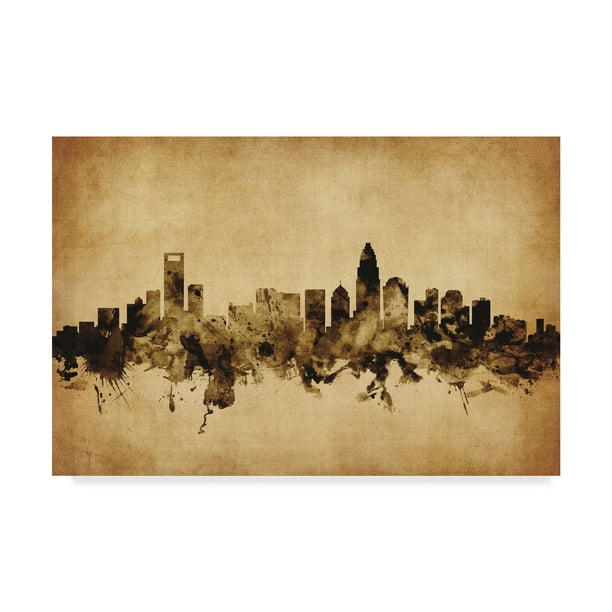 Trademark Fine Art Charlotte North Carolina Skyline Vintage Canvas Art By Michael Tompsett Walmart Com